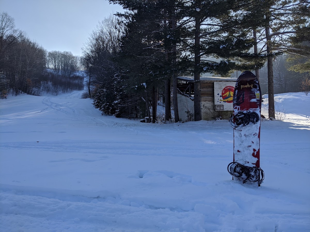 Great human-powered snowboarding (or skiing) on the former ski area terrain. Get your cardio by hiking up the old cat track and take your pick of fresh lines down the front of the hill. Rad place that I hope can succeed financially.